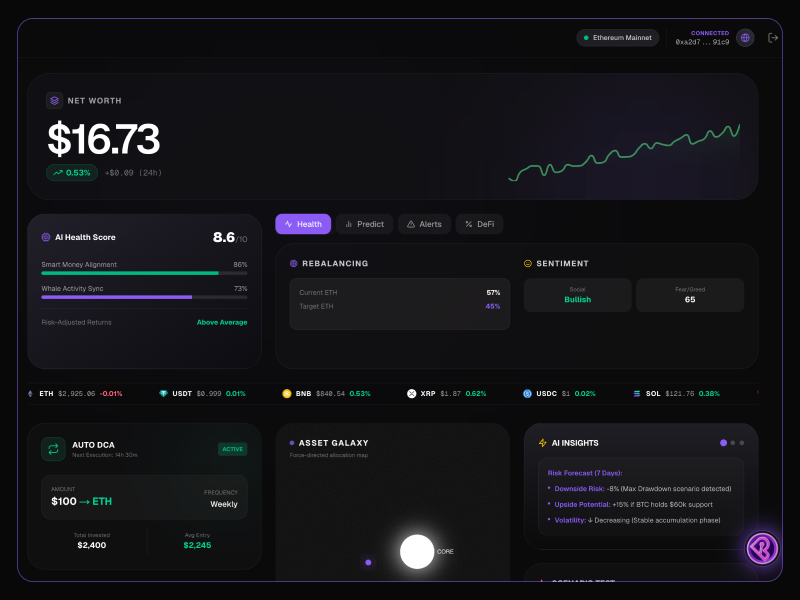The all-in-one command center for crypto. Real-time insights, automated risk analysis, and effortless portfolio tracking.